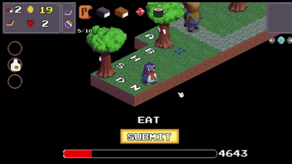 Levels in Pen Pen are filled with letters that Players must use to spell words. Indeed, spelling words is (mostly) the only way to progress from level to level.